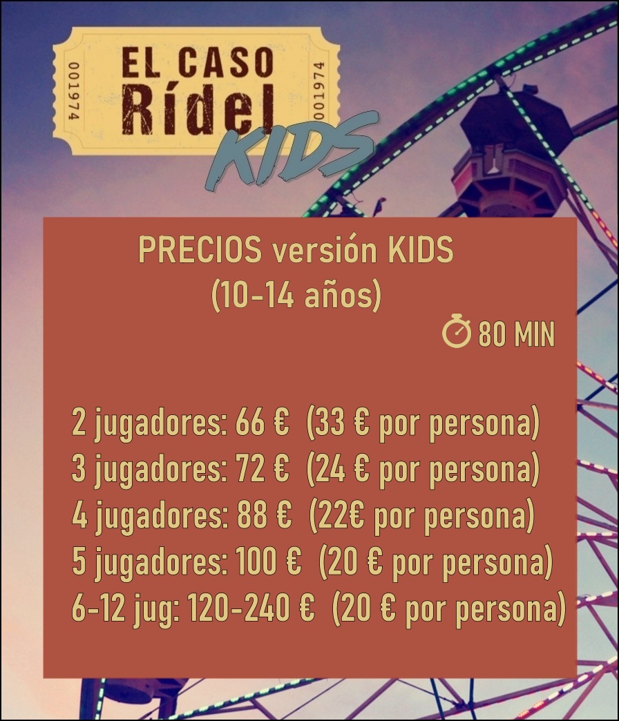 Disfruta de 10€ de descuento todos los JUEVES para El Caso Rídel usando el código promocional JUERNES10 cuando reserves tu experiencia a través de nuestra web.